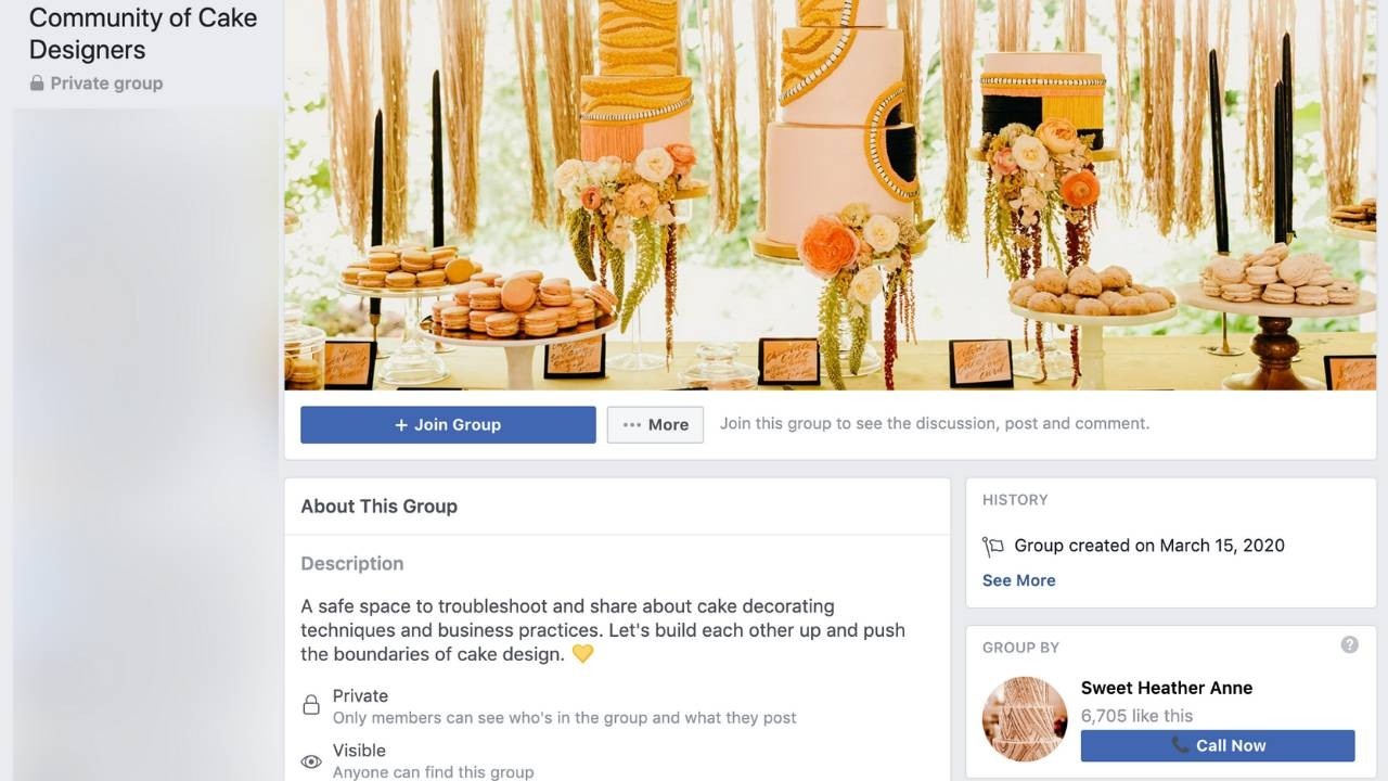 A safe space to troubleshoot and share about cake decorating techniques and business practices. A place to build each other up and push the boundaries of cake design.